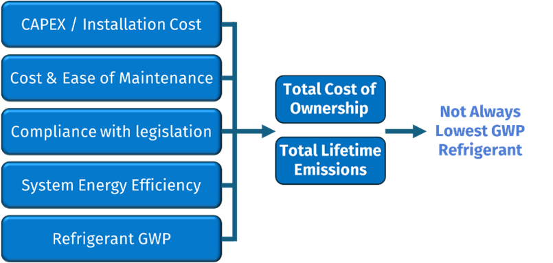 When choosing a low GWP refrigerant option there needs to be a change in the mindset used. Too many end users make the choice based on the installation cost alone, ignoring the ongoing cost of operation and the potential future availability of the refrigerant.